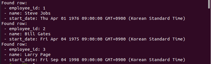 employees 테이블에 데이터가 삽입된 것을 확인할 수 있습니다.