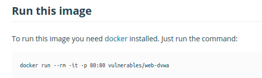 $sudo docker run --rm -it -p 80:80 vulnerables/web-dvwa // web-dvwa 자동설치