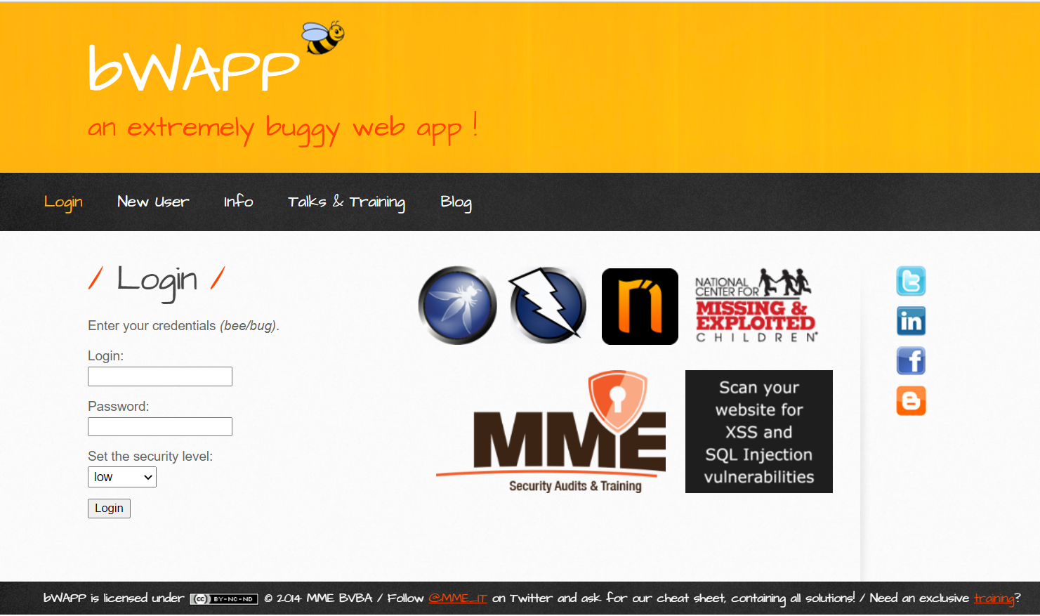 $sudo docker run -d -p 8000:80 raesene/bwapp