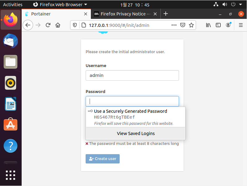 Ubuntu의 Firefox 에서 127.0.0.1:8000/install.php 에 접속 후